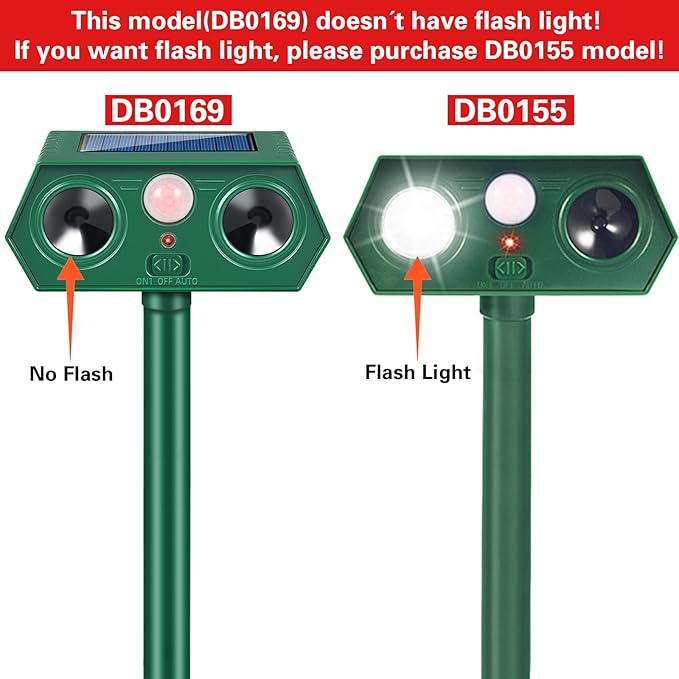 - 【Keep Your Garden Peace】Jahy2Tech racoon fortress profeatures a built-in motion sensor, it will emits powerful ultrasonic sound when the system detected movements, to deter animals from your protected area.(Model: DB0169. Please note this prodcut doesn't have flash light!)