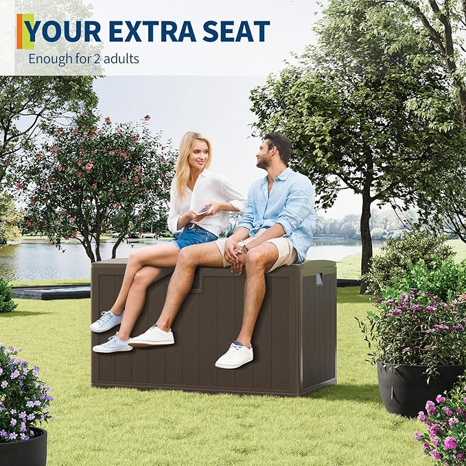- [USER-FRIENDLY DESIGN]Engineered for ease, our outdoor deck box features dual gas rods that allow for smooth opening and gentle closing, keeping fingers safe from being pinched. With ergonomic side handles, itβs easy to lift and move the box whenever needed. For extra security, enhance the storage with a password lock or small lock (not included) on the top cover. Enjoy secure, organized storage and effortless access to your belongings whenever you need them.