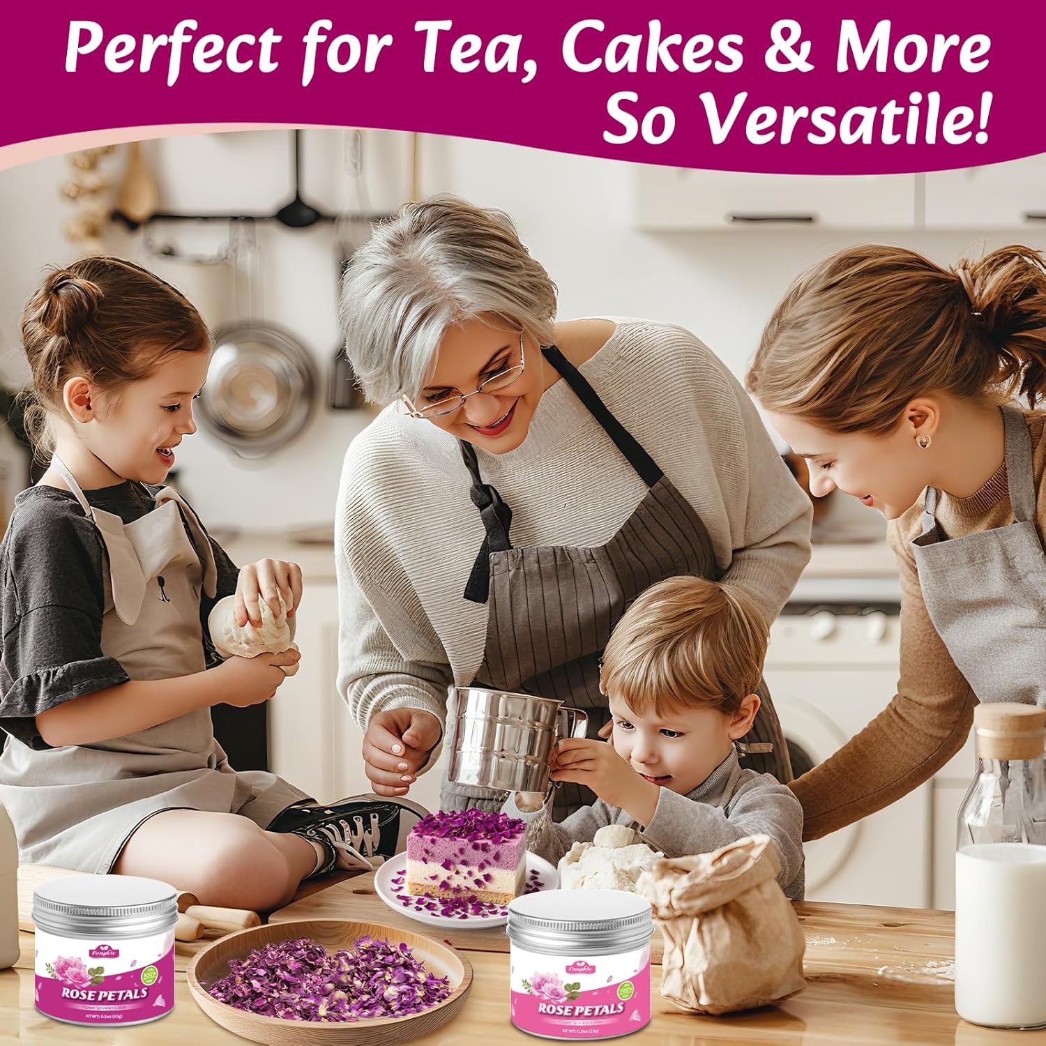- 【Dual-Color Premium Tin Set】Enjoy two beautiful tin designs in one premium set – classic deep rose and elegant light pink. Each tin contains 0.5oz/15g of edible rose petals, perfect for gifting or sharing.