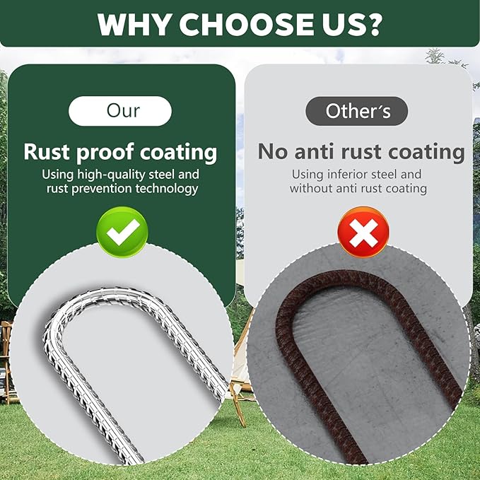 - Wide Applications:Versatile and reliable, our lawn stakes are perfect for a variety of outdoor projects. Whether you're securing tents, tarps, or landscape fabric, trust in their reliability and versatility for all your anchoring needs