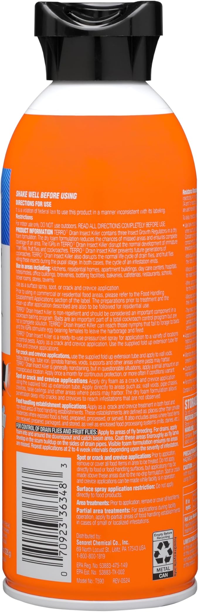 - Extension tube allows for precise application of TERRO Drain Insect Killer Foam