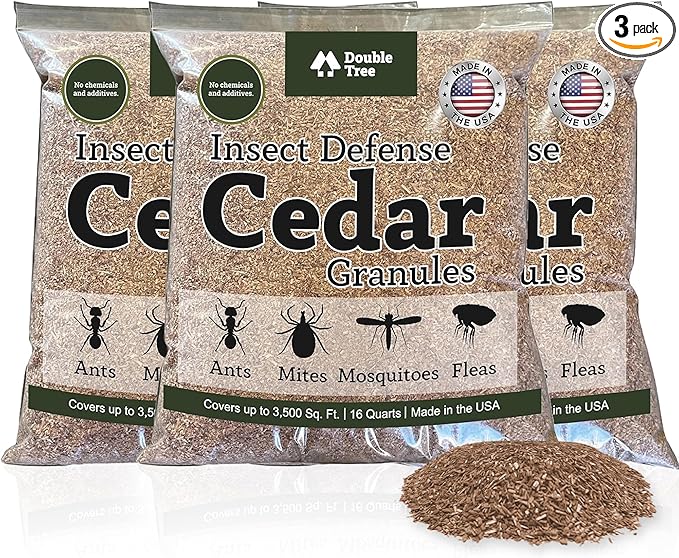 Double Tree Home and Garden Cedar Granules | Repels Fleas, Ticks, Ants, and Mosquitos | Rich Cedar Scent | Non Toxic | Pet Safe | 3 Bags (48 Quarts)