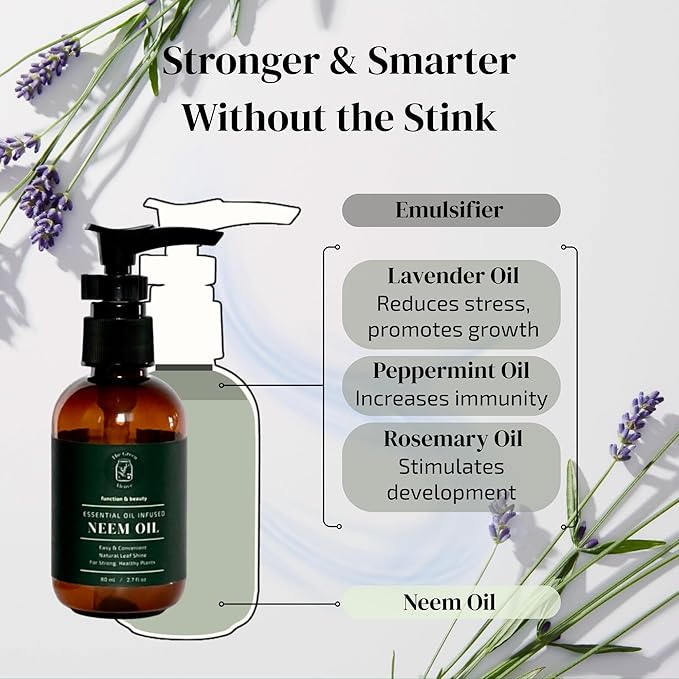 Neem Oil for Plants (Makes 480 fl oz) with Spray Bottle & Essential Oils | for Indoor Houseplants & Outdoor Gardens, Natural Leaf Shine
