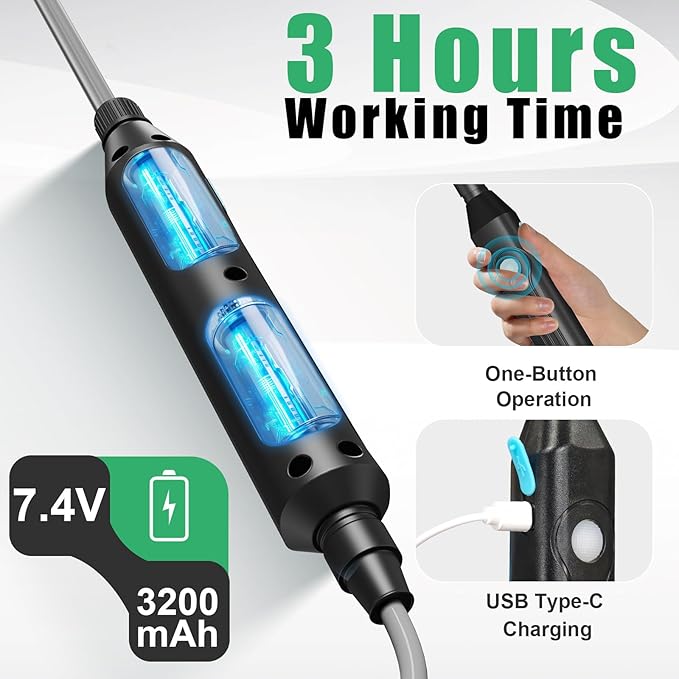- Rechargeable Battery Powered Sprayer: The upgraded 7.4V motor with 3200mAh batteries of this 2 gallon electric sprayer delivers powerful spraying for up to 3 hours, ideal for large lawns, gardens, or frequent use