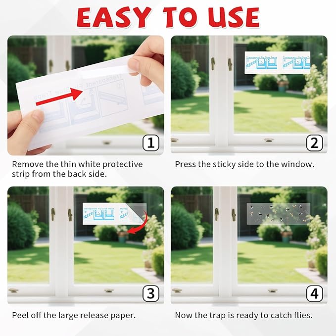 - Easy Application & Mess-free Removal: Simply peel off the protective film for instant use, stick to any window, and let it work its magic! No tools or setup required! These bug catchers can be removed instantly. They won't leave any sticky residue or marks on your windows. Easy to remove and dispose of.
