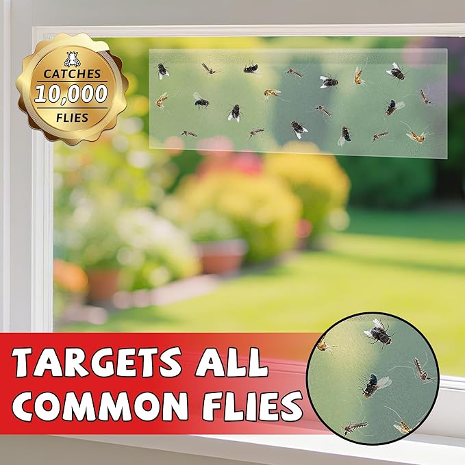 - Adhesive Fly Trap: These fly traps are designed with ultra-strong glue that effortlessly captures a wide range of flying insects. They are highly effective at trapping flies, moths, fruit flies, drain flies, fungus gnats and mosquitoes, helping to keep your home free from bugs.