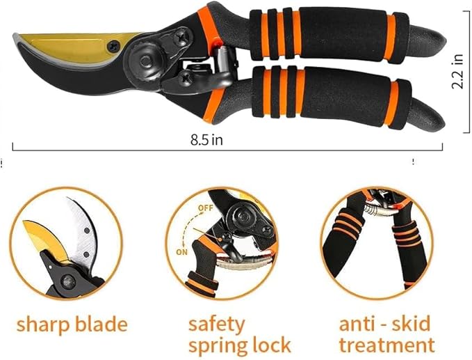 - 🌹8.5" Professional Premium SK5 Steel with Titanium Bypass Pruning Shears-Ultra-sharp And Durable,Ergonomically Designed,Versatility Pruners For Gardening,Safe And Easy To Handle