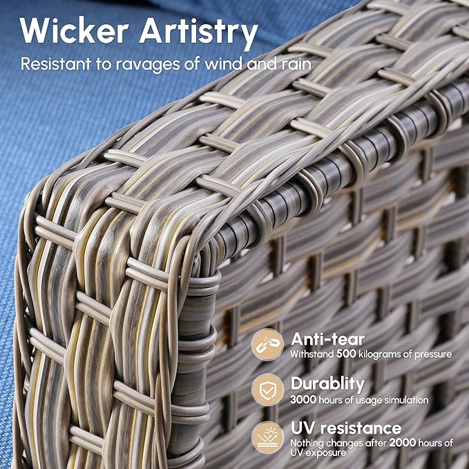 - Upgrade Your Outdoor Living: Experience unparalleled comfort with plush 3.5-inch thick cushions and thoughtfully designed ergonomic backrests in this elegant patio seating set. This durable wicker furniture combines style and functionality, making it perfect for cozy family moments or hosting guests. Whether placed on your patio, garden, poolside, balcony, deck, or backyard, this patio set transforms your space into a serene oasis for relaxation and entertainment. Elevate your outdoor retreat with a design that blends luxury and practicality