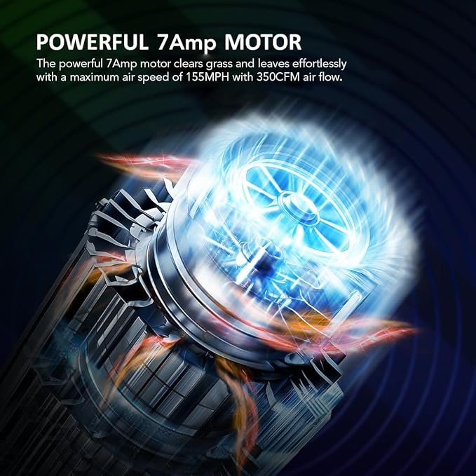 - POWERFUL MOTOR: High-performance GUEDE 7 Amp electric motor delivers strong airflow up to 155 MPH for efficient leaf and debris removal from yards, driveways, and walkways