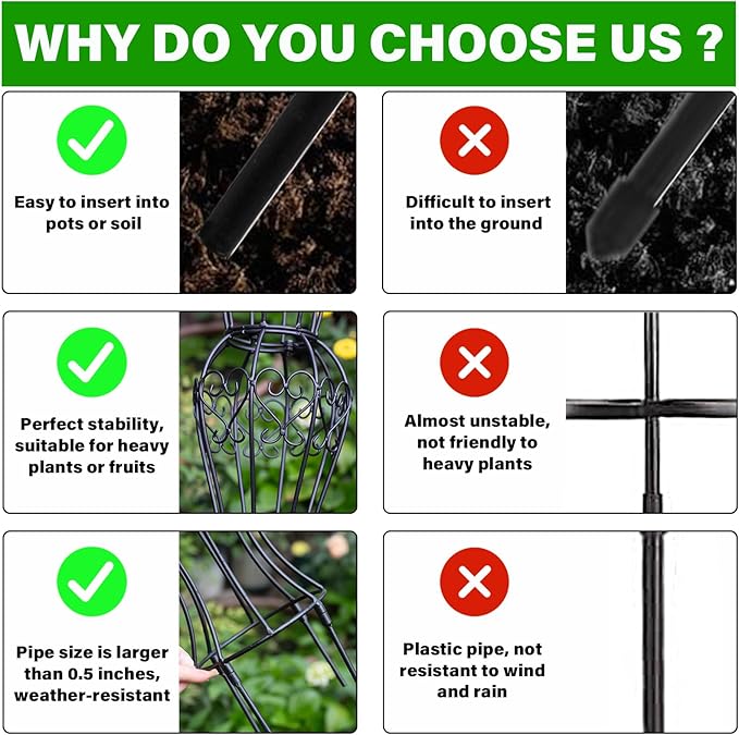 - Dedicated Customer Support: We prioritize your satisfaction and stand by the quality of our products. Should you experience any issues or have questions about usage, our professional support team is on hand to assist you promptly, ensuring you get the most out of your obelisk trellis.