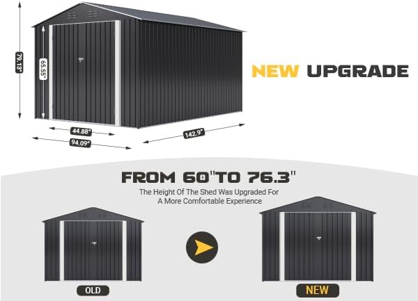- 【Ample and Organized Storage】Spanning dimensions of 142.9"D x 94.09"W x 79.13"H, the shed by Polar Aurora offers expansive storage, neatly accommodating your tools and outdoor essentials.