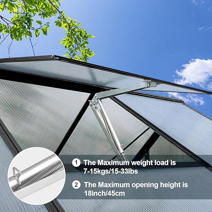 - 【Greenhouse Window Opener】: The Automatic Greenhouse Vent Opener is engineered to handle up to 15 lbs (7 kg) of load, making it ideal for most greenhouse windows. This automatic window opener ensures smooth, No electricity needed.