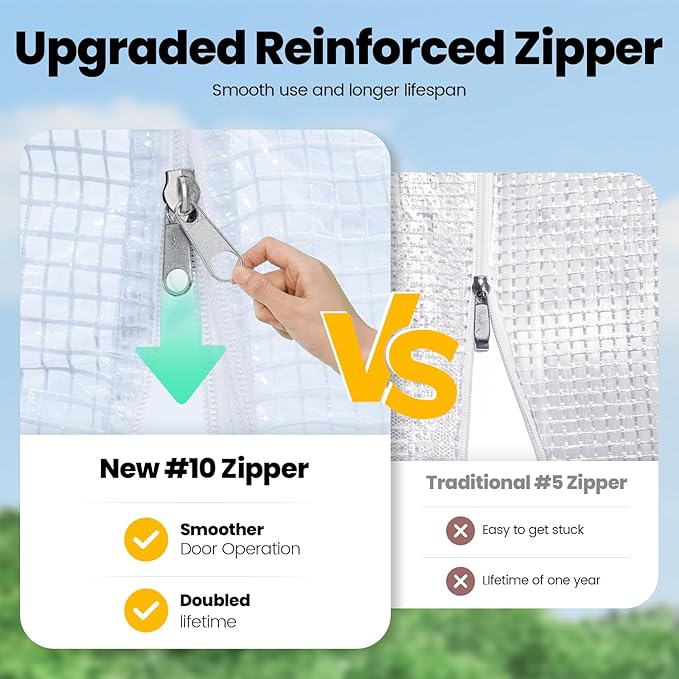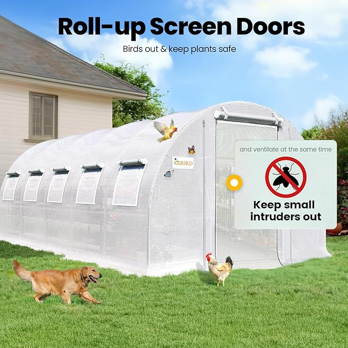 - [Temperature & Humidity Management]--Featuring 10 roll-up screen windows plus 2 door-netting, it facilitates temperature and humidity control. It increases temperature promoting early spring plant growth, enhances ventilation on hot summer days, and retains warmth during the winter. It keeps plants from pouring rain, winds, and snow.