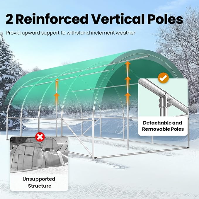 - [Temperature & Humidity Management]--Featuring 8 roll-up screen windows plus 2 door-netting, it facilitates temperature and humidity control. It increases temperature promoting early spring plant growth, enhances ventilation on hot summer days, and retains warmth during the winter. It keeps plants from pouring rain, winds, and snow.