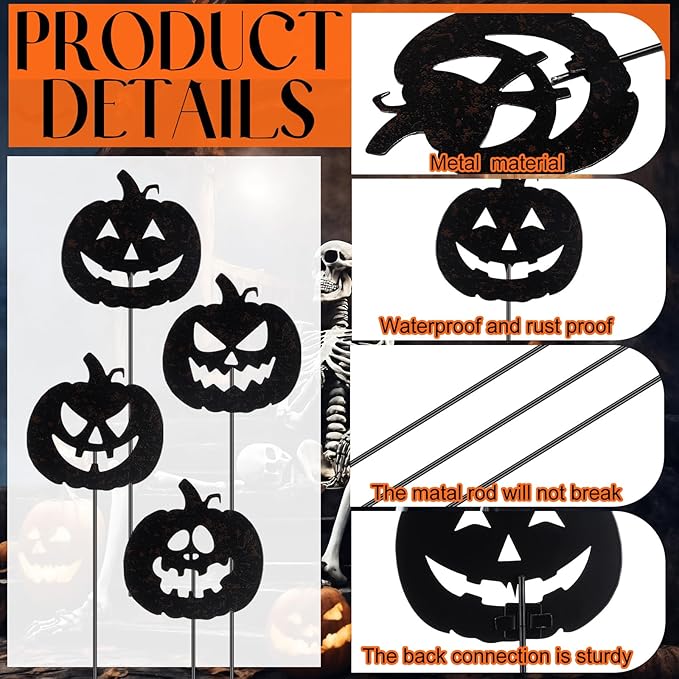 - Package Included: our Halloween planter stakes set contains 4 jack o pumpkin metal stakes, which can be set up in pumpkin, flower pots and yards to create a harmonious and unified atmosphere, making your Halloween more colorful and exciting