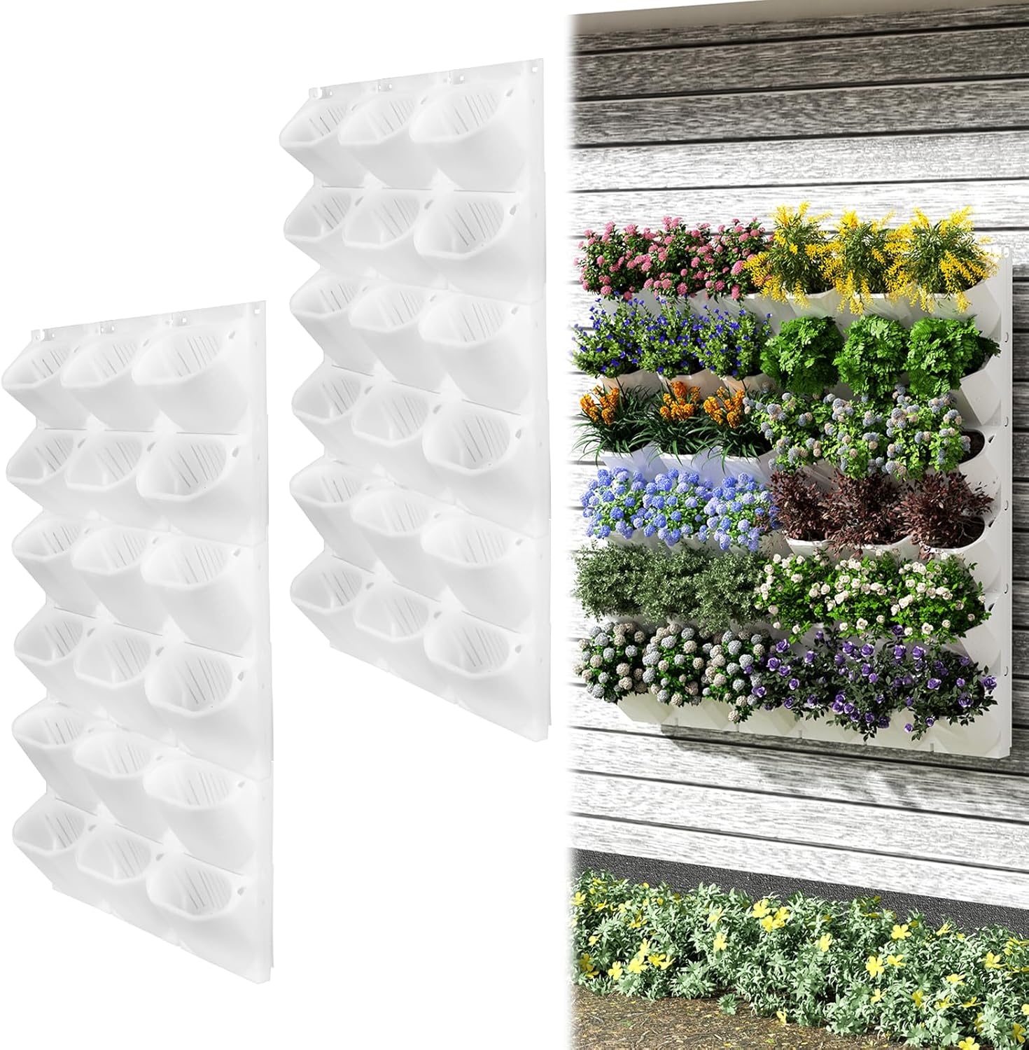 Self-Watering Vertical Wall Planter, 36 Pots Wall Mounted Garden for Indoor/Outdoor, Stackable Planter, Includes Panels, for Herbs, Flowers & Vegetables (White)