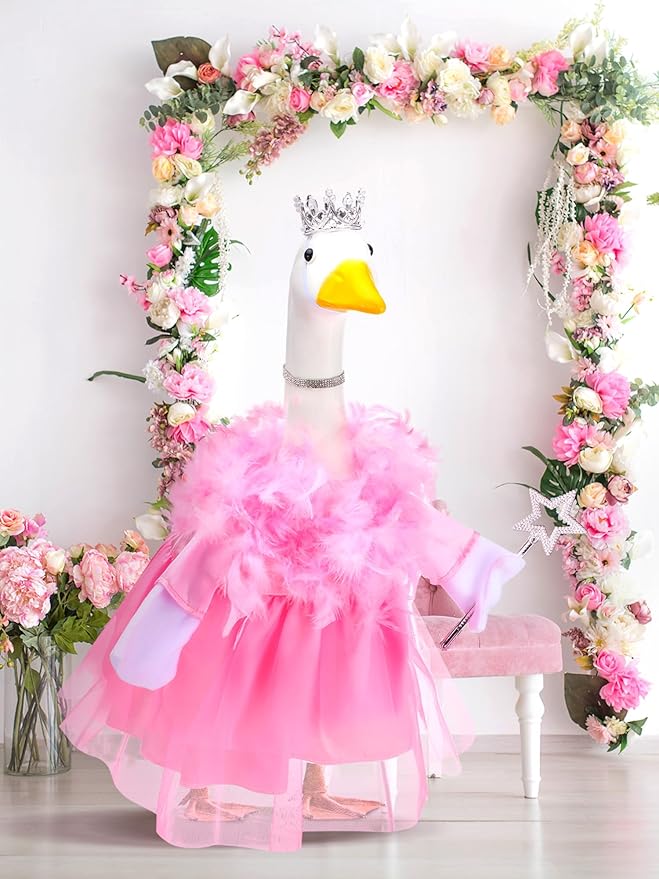 - Applicable Occasions: this princess goose skirts for porch goose is ideal for spring, summer, holiday, princess themed parties, birthday parties, baby shower or any time you want to add a touch of charm to your outdoor lawn decoration, these goose outfits are a must have for any garden enthusiast; Dress up your plastic goose in style this season with this funny princess costume for porch goose and spread some joy and laughter in your neighborhood
