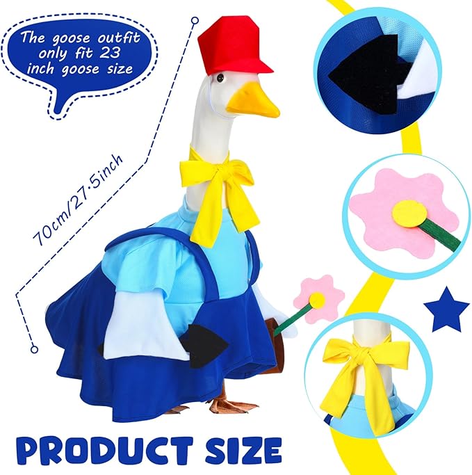 - Ideal Size Outfits for Cement Goose: this yard goose outfits features with exquisite and delicate workmanship, with appropriate size, fits most standard lawn geese around 23 inches, ensuring a tight fit and prevents the clothes from being easily blown off by the wind, and easy to put on and take off, making it a nice option for cement goose outfits