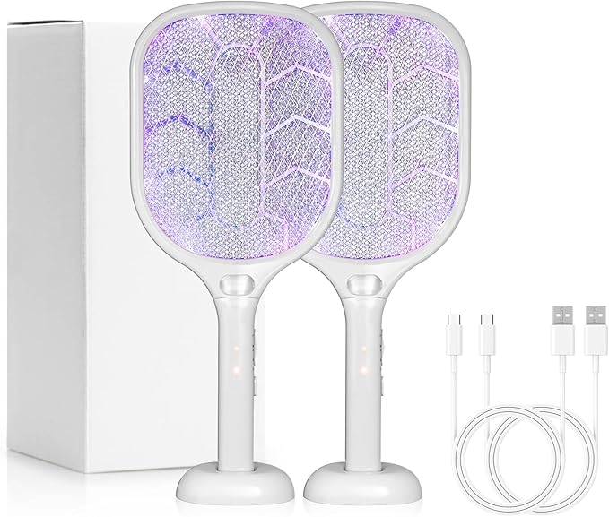Lulant Electric Fly Swatter Racket,3000V Bug Zapper Racket,1800mA Battery Rechargeable Mosquito Killer, Type-C Rechargeable Base, Three-Layer Protective Safety Mesh for Indoor and Outdoor (2Pack)
