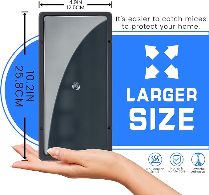 - Sturdy and Larger Traps: large size traps:10.2inch*4.9inch.the larger and heavier sturdy trays to capture larger rodents. Its heavyweight prevents rats and mice from dragging this rat trap when they try to escape. Using our glue traps for mice and rats will help you achieve first class results!