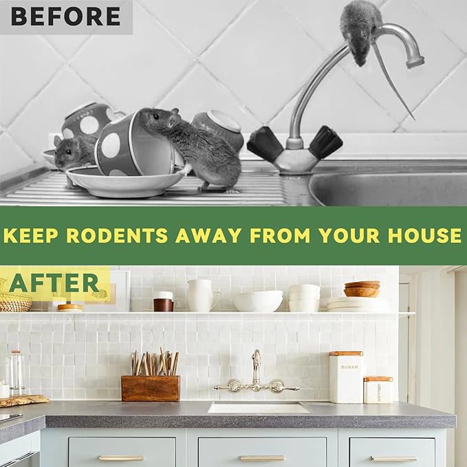 - WIDE RANGE OF MOUSE CONTROL: Our Repellent for mice create an all-round protection for you and your family. You can use in basement, kitchen, garden, Attic and so on.