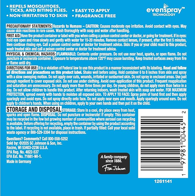 - Continuous aerosol spray provides easy and fast application while ensuring uniform coverage of anti-mosquito formula