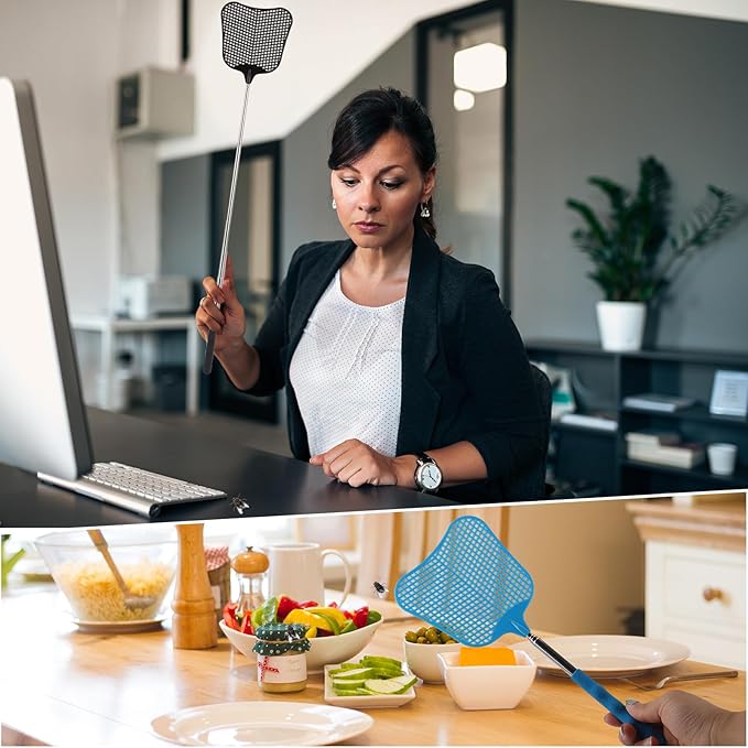 - Long handled fly swatters extendable pole to 25.5 inch for those high ceilings that regular swatters can't reach, easily shoot flies without having to get too close