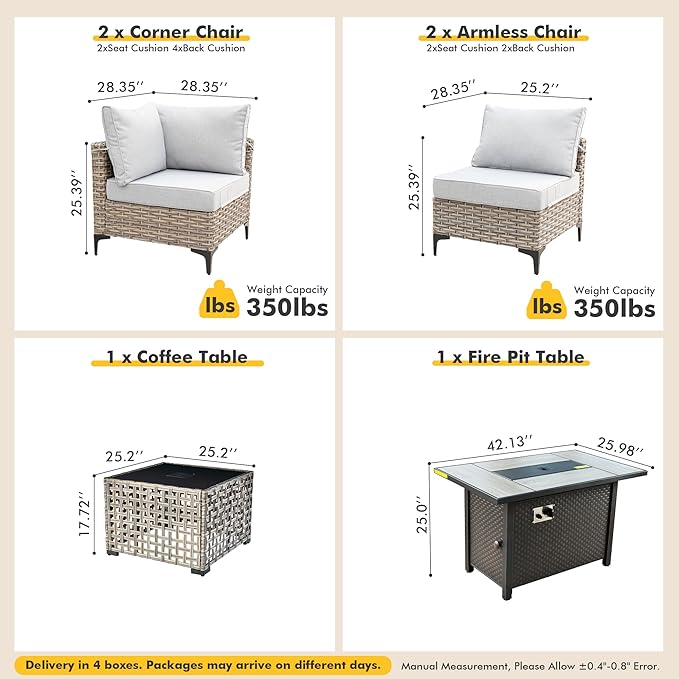 - Cloud-Like Comfort, Built to LastSink into the plush thick seat cushions and ergonomic backrests of our patio furniture set, perfect for all-day lounging. Every piece, including the ottomans, supports up to 350 lbs, combining luxurious comfort with industrial-strength durability