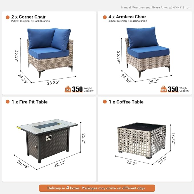 - All-Weather Patio Modular Sectional Sofa Set:Built to last, our All-Weather Patio Modular Sectional Sofa Set is crafted with premium, handwoven PE rattan, designed to withstand rain, snow, and blazing sun. Whether hosting guests or relaxing solo, this patio conversation set — including the outdoor sofa and chair — resists stains and is water-repellent, ensuring effortless maintenance for a pristine backyard oasis