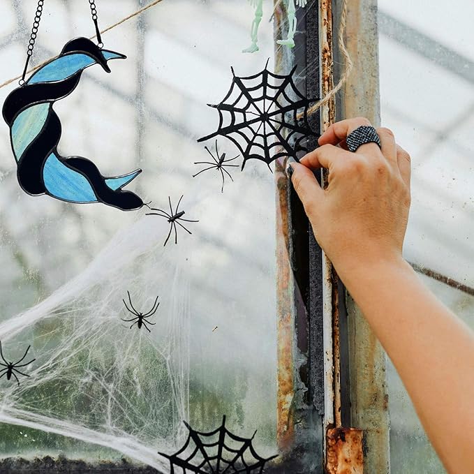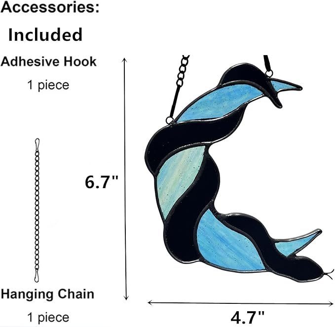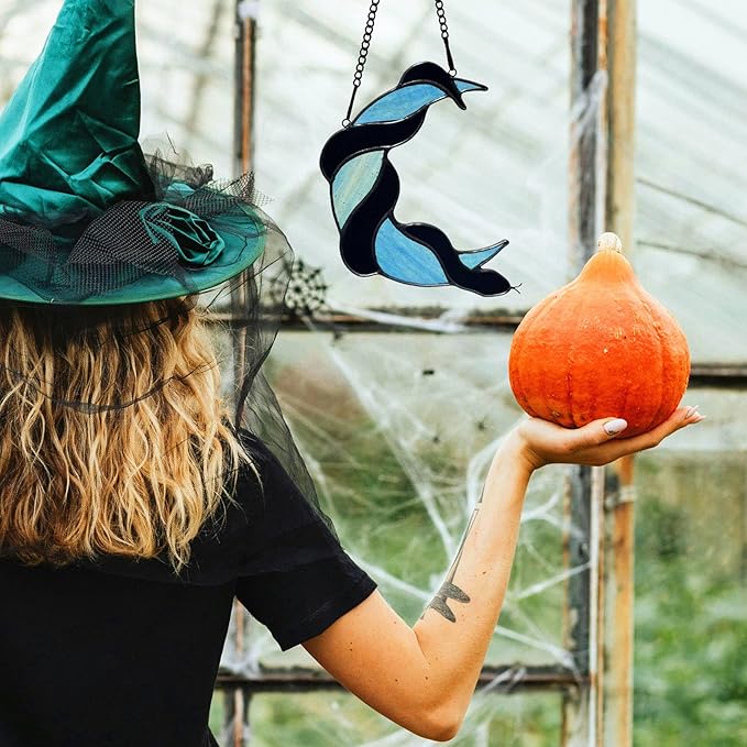 - Mystical Gothic Artistry: Intricately handcrafted stained glass raven perched on a crescent moon. Perfect for adding dark elegance to windows, porches, or Gothic-themed interiors. Comes ready to hang with attached hanging hardware for quick and easy installation in any window.