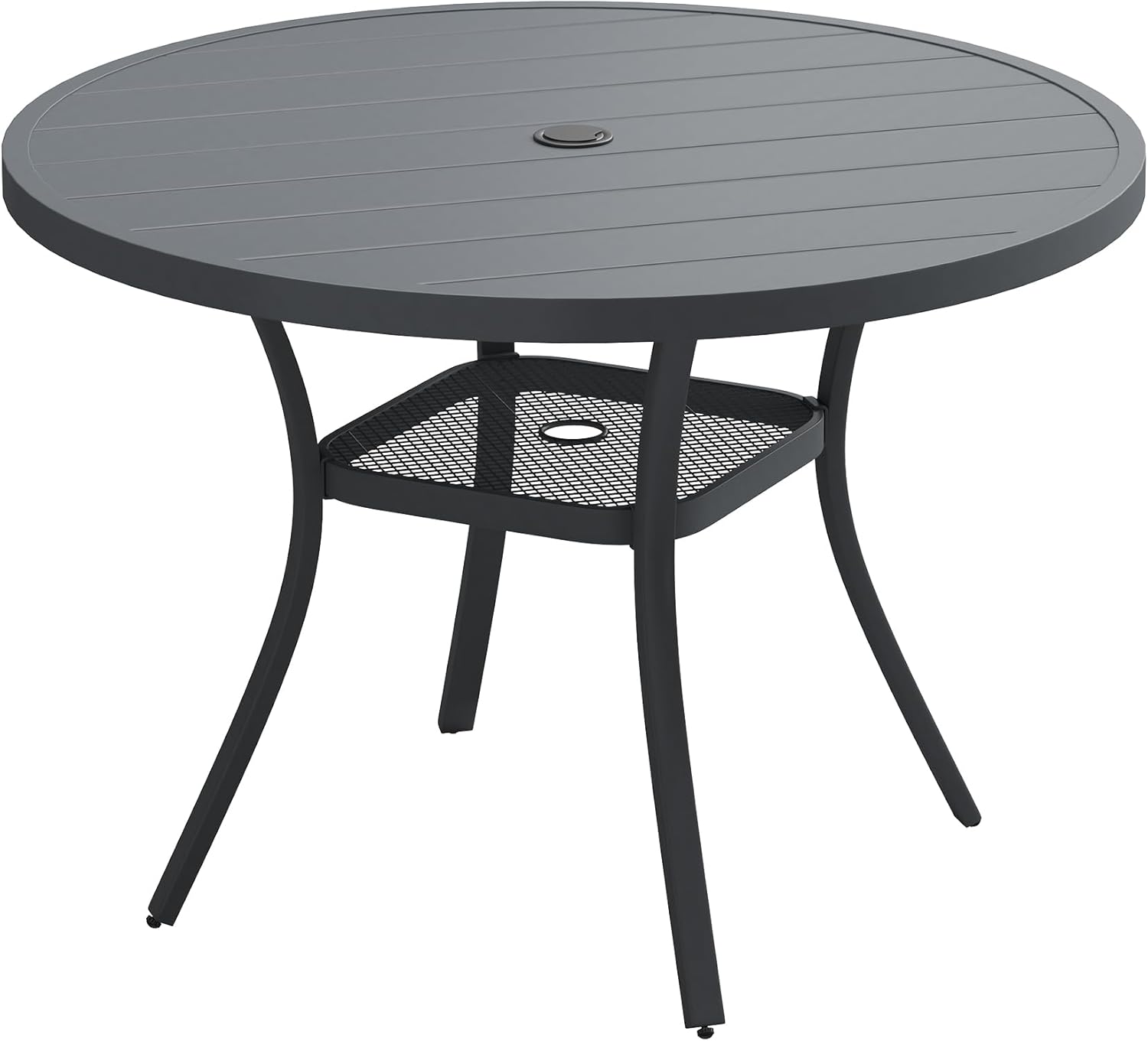 VICLLAX 41.2"x 28" Outdoor Round Patio Table for Lawn Garden, All Weather Metal Round Patio Dining Table with Adjustable Umbrella Hole, Patio Table for 4 Person, Grey Tabletop