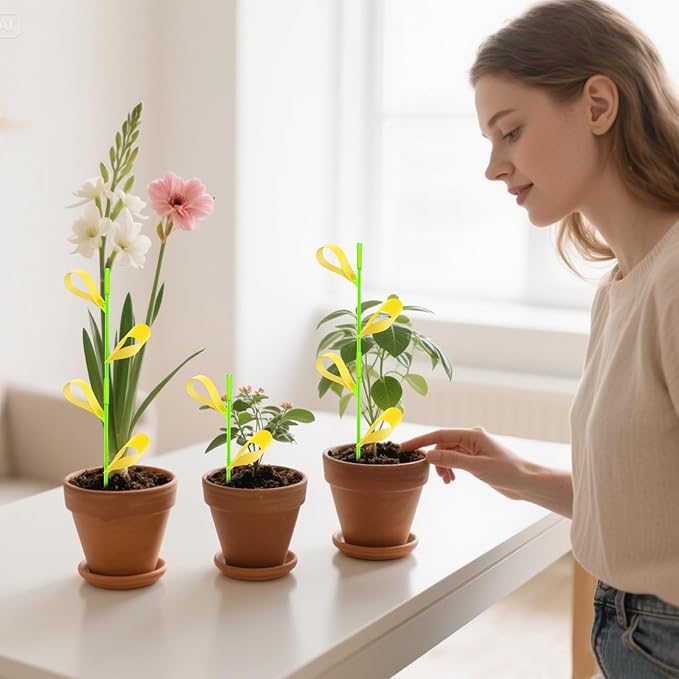Gnat Sticky Traps for Plants, 100PCS Yellow Sticky Traps for Plant Gnats Indoor and Outdoor White-Flies Mosquitoes Killer, 15PCS Stakes Holder Included