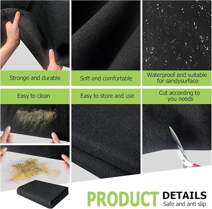 - RELIABLE MATERIAL: Waterproof outdoor carport mat, the surface is made of felt, can absorb water and oil, will not slip, can effectively waterproof and dustproof; the bottom is made of PE material, wear-resistant, waterproof, non-slip; can effectively protect the ground or the storage shed floor, to prevent the leakage of underground water.