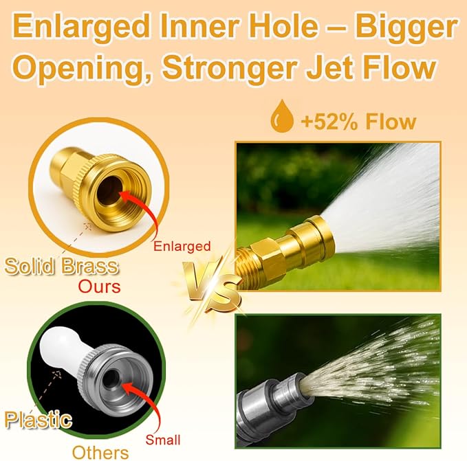 - Premium Solid Brass Fittings for Leak-Free Performance - Equipped with solid brass connectors that resist rust, corrosion, and leaks, this 10ft garden hose ensures a secure, long-lasting connection. The heavy-duty fittings prevent cracks and withstand high water pressure, making it ideal for RV, car washing, and outdoor watering. Unlike cheap plastic connectors, our brass-enhanced design guarantees durability and a tight seal every time