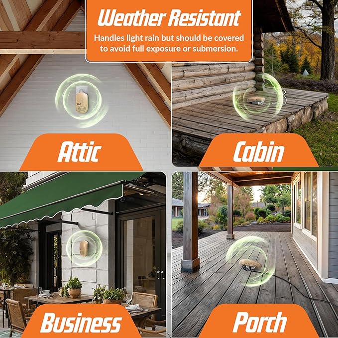 - Dual Bat Repellent Speakers for Maximum Coverage: Our bat repeller features dual high-powered bat deterrent speakers, delivering a robust and widespread ultrasonic effect covering up to 7000 square feet of open room coverage