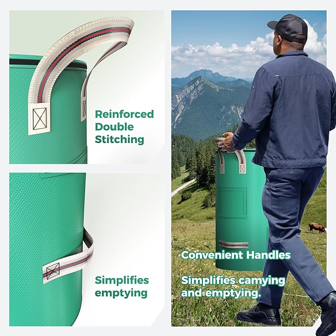 - Window enlarging:The large top and bottom openings of the compost bags simplify the process of adding organic waste and removing the finished compost, and the reinforced stitching makes the operation smooth and reduces spills. Note: When removing soil, try to avoid soil contact with self-adhesive tape