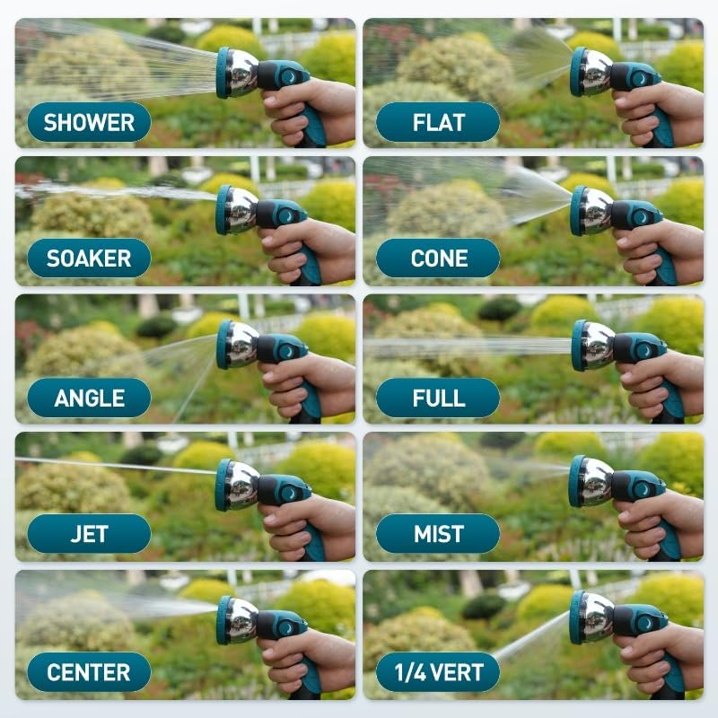 - 10 ADJUSTABLE SPRAYER PATTERNS:The high pressure hose nozzle has 10 adjustable hose sprayer patterns, and lets you to use high pressure hose nozzle for watering your patio lawn, gardening and washing your cars and pets.