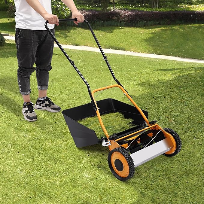 - 【Strong and Durable】Reel mower is made of high-strength steel and corrosion-resistant aluminum with a powder-coated finish that enhances wear resistance and ensures reliable use. From the reinforced frame to the precision-cut blades, every component reflects meticulous craftsmanship to withstand harsh outdoor conditions. Rounded corners add extra safety and protect hands during assembly, handling and cleaning, making it a durable and user-friendly choice for long-term lawn maintenance.