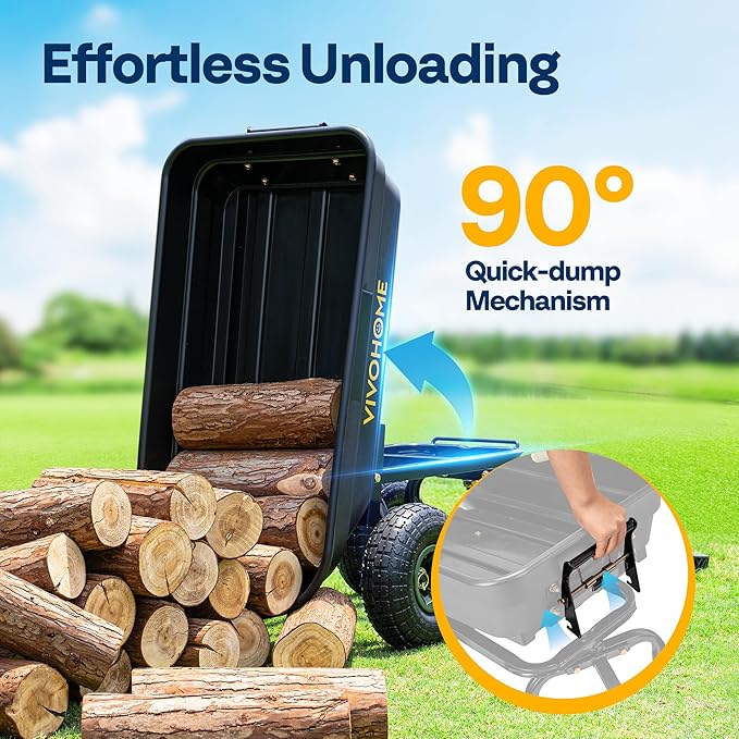 - Quick and Easy Installation: The wagon features a 90Β° quick-dump mechanism for smooth and effortless unloading of heavy materials like dirt, leaves, or wood chips; It also offers a simplified steel frame that assembles quickly without tools, saving you time and effort