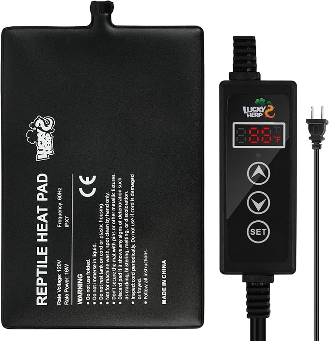 LUCKY HERP Reptile Heating Pad 16W 8X12 Inch with Thermostat, Under Tank Heater Terrarium Warmer Heat Mat and Digital Thermostat Controller for Hermit Crab, Turtles Lizards, Reptile