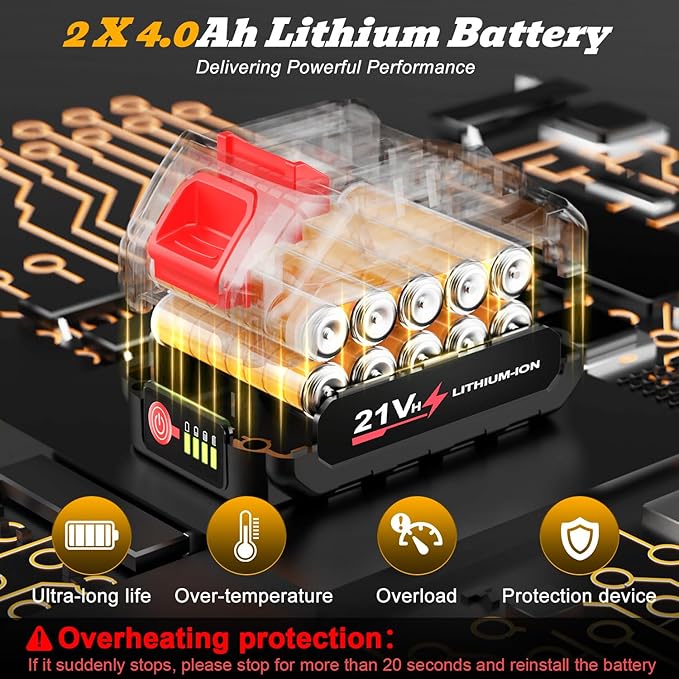 - 【21V*2 Pcs Batteries 】The Leaf Blower Cordless is equipped with two large capacity lithium batteries of 21V * 2 Pcs, so even when used outdoors, there is no need to worry about running out of power.