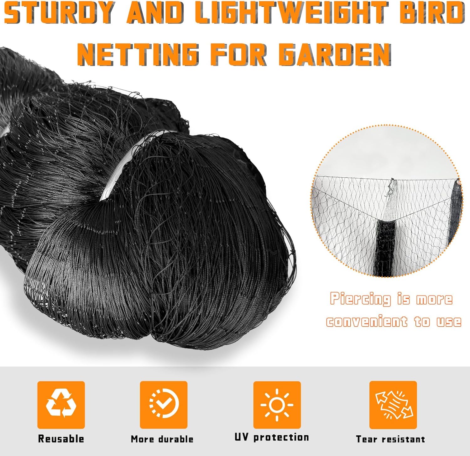 - Durable material: Our lightweight but heavy duty bird net is is made of nylon multifilament net which is UV-proof, this nylon netting won't tangle and tear easily, highly durable and reusable. Ideal for backyard gardens, poultry enclosures, and animal barriers