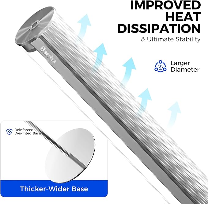- Black & Silver Design for Home:Barrina T1S Vertical plant light prioritizes stability and durability. The thicker round base and wider lamp diameter enhance heat dissipation, while aluminum construction ensures long-term performance
