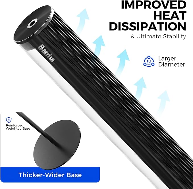 - Black & Silver Design for Home:Barrina T1S Vertical plant light prioritizes stability and durability. The thicker round base and wider lamp diameter enhance heat dissipation, while aluminum construction ensures long-term performance