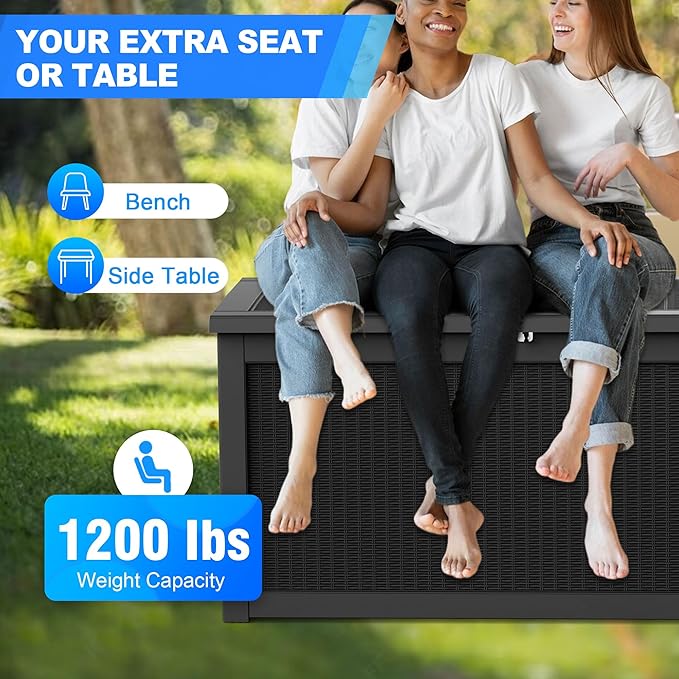 - All-Weather Outdoor Storage Box : UV-resistant resin laughs off sun, rain, and snow without fading or cracking. Perfect for patio cushions, gardening tools, – keeps everything dry and organized season after season.