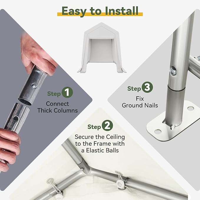 - Quick Tool-Free Assembly: No tools required! Each numbered part connects seamlessly with clear instructions. Set up this carport shelter in minutes, ideal for temporary or semi-permanent storage solutions. Compact yet robust, itās your go-to hassle-free shelter!