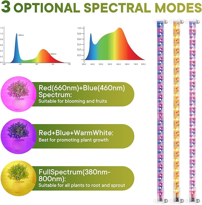 - FULL-SPECTRUM GROW LIGHTS: Equipped with 4 plant growth light strips that simulate sunlight, ensuring each layer gets optimal lighting. Choose from 3 colors (red/warm/blue) and 3 timer settings (4/8/12 hours) to ensure proper plant growth