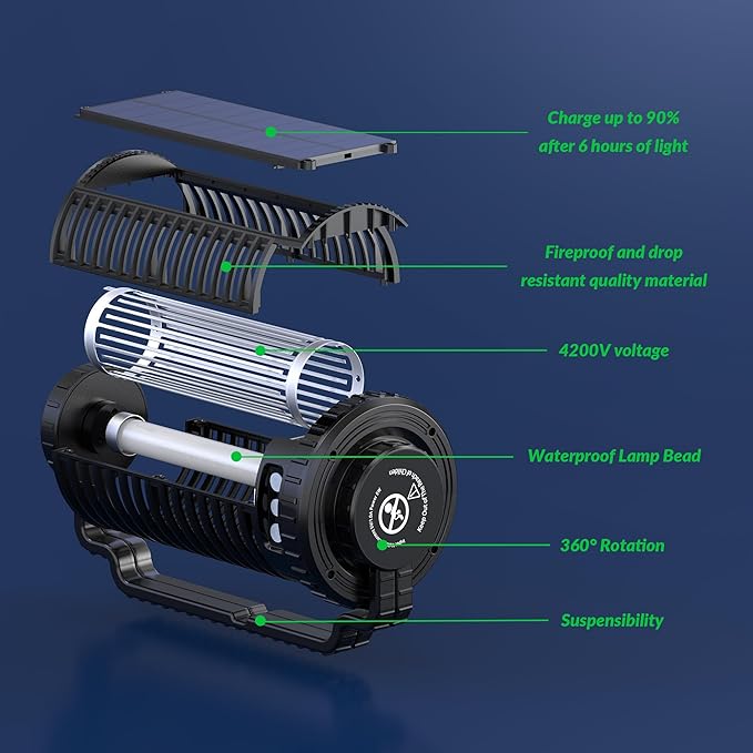 - Solar Charging with Automatic Mode for Hassle-Free Use Designed for convenience, this solar-powered bug zapper automatically charges during the day and activates the mosquito-killing mode at night. No need for constant monitoring or manual switching—just set it and forget it. It’s the ideal solution for hands-free insect control