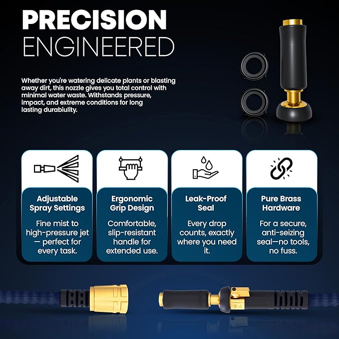 - [Feather-Light, Super Strong] Redefining watering with its incredibly lightweight design, experience unmatched watering efficiency with our Titan garden hose. When paired with our precision-engineered nozzle, this hose delivers exceptional pressure for everyday watering tasks while saving you water. Ideal for garden maintenance, vehicle cleaning, RV, marine use and more, for a powerful and consistent water flow.