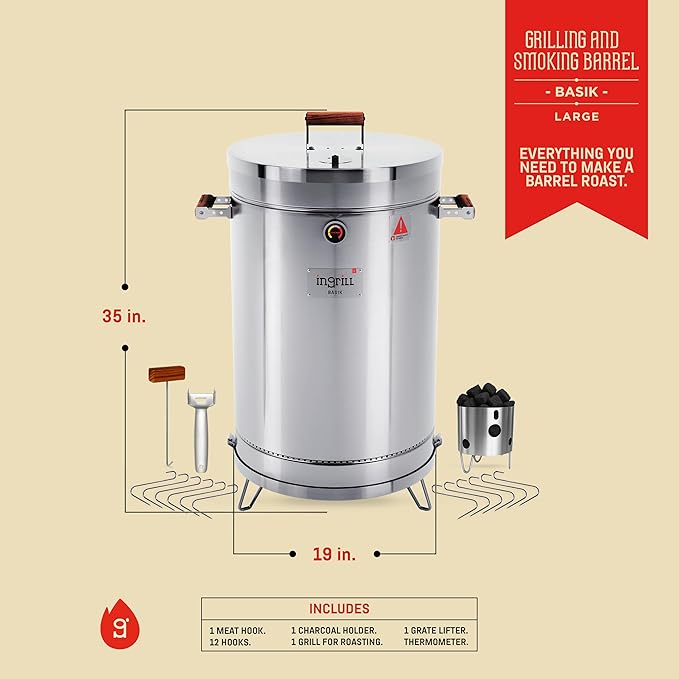 - EXPERIENCE INFINITE POSSIBILITIES WITH EFFORTLESS COOKING - The InGrill isn’t just a barrel smoker, it’s your 3-in-1 grill, smoker, and outdoor oven. Sear juicy steaks, slow-smoke tender brisket, ribs, or bake pizzas with unmatched flavor. From classic BBQ to gourmet creations, this versatile smoker handles beef, pork, turkey, chicken, seafood, vegetables, and even fruits to perfection. Endless possibilities, mouthwatering results every single time.